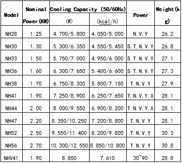 將來自蒸發(fā)器內(nèi)低溫、低壓的制冷劑氣體壓縮成為高溫、高壓的制冷劑氣體,送入冷凝器冷凝,成為高壓中溫的液態(tài)制冷劑,經(jīng)過節(jié)流元件(膨脹閥或毛 細(xì)管)節(jié)流降壓后再送入蒸發(fā)器,由于蒸發(fā)器內(nèi)部空間較大,液態(tài)制冷劑在蒸發(fā)器內(nèi)部汽化并吸收熱量,使蒸發(fā)器表面溫度迅速下降,再配以風(fēng)機(jī)、風(fēng)葉的旋轉(zhuǎn), (水冷機(jī)組以水作為載冷劑流過蒸發(fā)器表面帶走冷量)使空氣與蒸發(fā)器對流,完成冷量的交換,將冷量散發(fā)到室內(nèi)或工作所需場所。